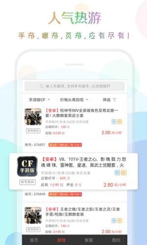 这款应用不仅覆盖了市面上几乎所有热门游戏,如穿越火线、王者荣耀、QQ飞车、和平精英、绝地求生以及LOL等,还支持Steam账号的租赁,让玩家能够轻松体验到更多优质游戏。其界面设计简洁明了,操作流畅,即使是初次使用也能快速上手。此外,该应用还提供了丰富的账号选择,每个游戏类别下都有大量优质账号供用户挑选。