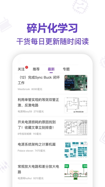 电子星球APP是一款主打电子工程师培训学习的软件,如果想要继续提升自己的技能水平,那么这款突破传统的软件绝对是一个不错的选择,其汇集了海量优质培训课程,并在持续不断更新中,帮助电子工程师们可以随时随地在线学习前沿热门技术,且更有专家精心录制的课程内容,让你全面了解掌握!软件的独特之处体现在多方面,不仅微课功能让学习更自由,还有专注电子工程信息的专业老师解答,大家可以在这里找到答案。此外,软件更好的满足了碎片时间的学习需求,支持设置视频播放倍数的同时提升了全屏播放功能,大家任何时候都能够在这里关注电子实验热门技术。并且,电子星球APP的直播间功能更是精彩纷呈,用户随时可发布个人视频来完成深厚知识的积累,掌握实验诀窍。