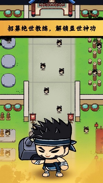 1、非常的简单放置玩法,打造你的豪华武馆,并招募角色,完成江湖游历等等。