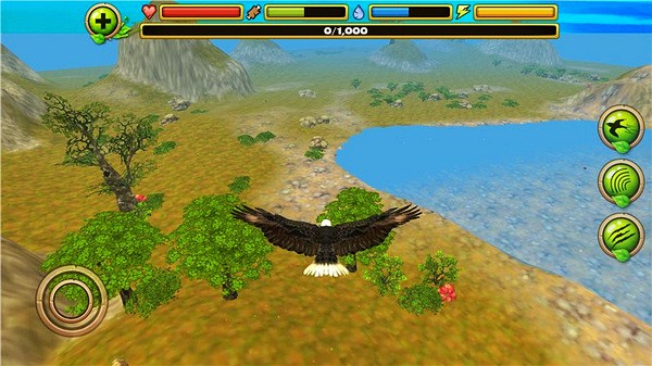 高清画面:游戏采用了精美的3D画面,为玩家呈现了一个绚丽多彩的自然世界。老鹰的形象也栩栩如生,让玩家仿佛置身于真实的飞行体验中。