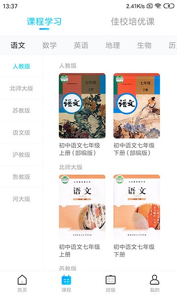 2、同步校园教材。课程内容的设计与校园使用的纸质教材同步;