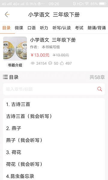 2、选择书籍后你可以看到书籍中的所有内容分类和书籍简介。