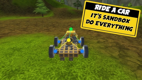 4、最后制造成功这辆奇怪的车子,游戏中提供了诸多零部件,以及能实现各种功能的辅助道具。玩家可以随意使用道具,并创造它们之间的联系。比如让发动机与涡轮连接,让其转动;只要想得到都有可能。
