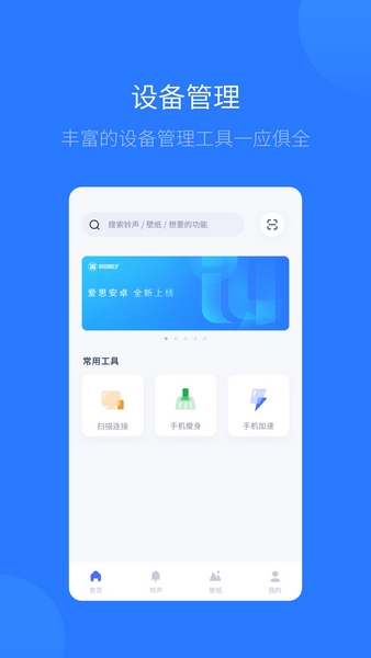 连接设备可查看各项设备信息详情,并可查询AppleID锁、保修期限及电池寿命等信息;高效管理手机,轻松管理设备中应用游戏、照片、音乐、铃声、视频、通讯录等资料,备份资料、修复应用闪退、清理手机垃圾等更多功能等你来体验。