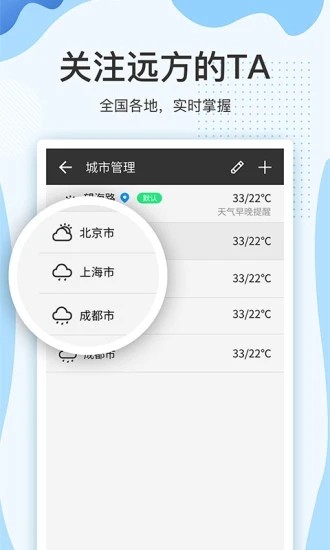 支持全国多个城市及地区天气查询,采用逐小时天气预报实时监测阴晴雨雪及空气质量。