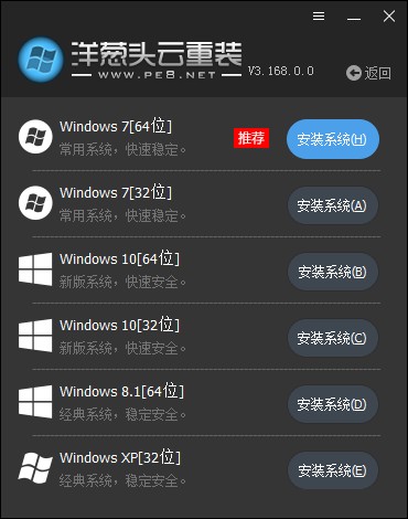 洋葱头云重装是一款功能强大的在线重装系统工具。能完美适配当前系统环境,DOS、本地PE和在线PE三种模式自由切换。一键重装系统(在线重装xp/Win7/Win8/Win10系统)、一键备份还原(智能备份当前系统,并可以在需要的时候进行恢复!)一键U盘启动(制作U盘启动盘,随时随地重装系统!)。