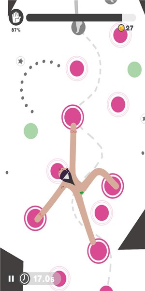 面条攀岩者是一款卡通趣味的攀岩游戏,非常富有想象力,带给玩家们趣味十足的游戏经历。游戏中有多种小人形象可以选择,玩家需要利用灵活的攀岩技巧逐渐到达巅峰,是一次又一次的欢乐挑战,乐趣满满。游戏极简的画面,干净整洁的画风,玩家需要控制小人将四肢全部搭在同色圆形内才能够稳定住身形,是一款简单有趣,但是又与众不同的一款休闲游戏。面条攀岩者简单迷人,却又有点幽默滑稽的视觉风格,绝对让你久久难忘,玩家们还可以与好友轻松分享自己的服装搭配心得和猎奇姿势。游戏魔性诙谐,非常好玩。