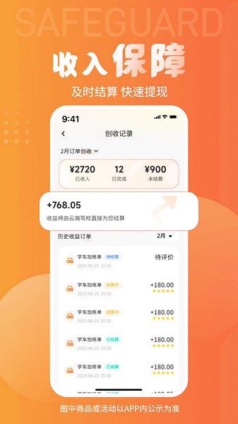 创收记录订单展示练车时间,信息展示更清晰。
