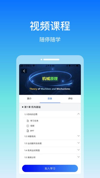 观看微课,做练习题,平台上可以看到并跟进自己学习的每一门课程的进度。
