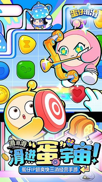 滑动匹配消除:游戏界面中会有各种颜色的蛋仔元素,玩家通过滑动屏幕,将相邻的三个或更多相同颜色的蛋仔进行消除。这是游戏的核心玩法,每一次成功消除都会获得分数和奖励。