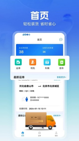 货车司机可以通过该软件查找合适的物流订单,且运输速度和安全有保障。