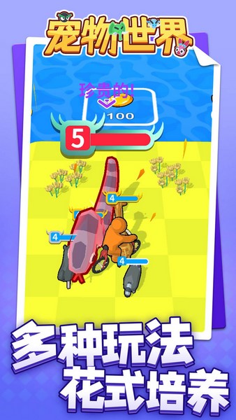 宠物世界是一款超级有趣的收集类游戏,玩家可以骑着自行车在地图上自由探索,邂逅各种可爱的宠物。这些宠物不仅能自动战斗,还能组成队伍挑战强大的BOSS,让人大开眼界。游戏的画风清新可爱,操作简单又不失深度,特别适合喜欢轻松休闲玩法的玩家。