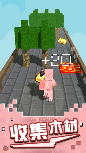 像素人跑酷是一款跑酷游戏,不过它的画面是很有特点的,有着和《我的世界》相同风格的角色造型和场景。这里的赛道也是很复杂的,由各种元素组合成的机关障碍,需要玩家快速发现解开的方法并通过。另外在路上也可以收集各种资源用来建造,比如金块、木材等等。此外游戏中还有很多角色皮肤可以解锁使用,可以随时切换使用。