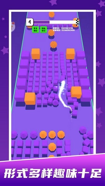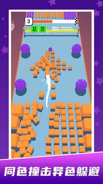 冲撞相同颜色的物品并持续前进,球球在到达终点的过程中没冲撞其他的颜色物品即可过关。