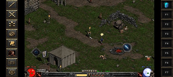 3、45°视角角色游戏操作界面、首创hp、mp及快捷操作技能视窗界面,是传奇等网络游戏模式的始祖.