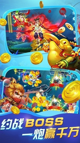 【特色鱼阵】 捕鱼快手内置特色boss,百倍银鲨,万倍金鲨。百倍爆率不停。