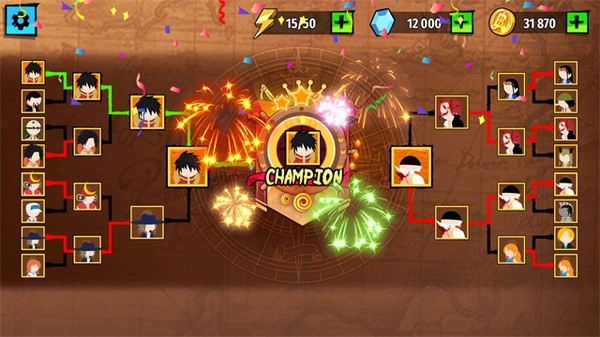 个性海贼人物:除了火柴人路飞,你还可以解锁众多个性海贼人物和皮肤,每个都具有独特特点,让你尽情选择。
