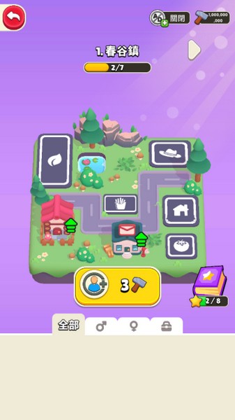 7、点击首页的建造城镇,通过闯关获得锤子建造城镇。