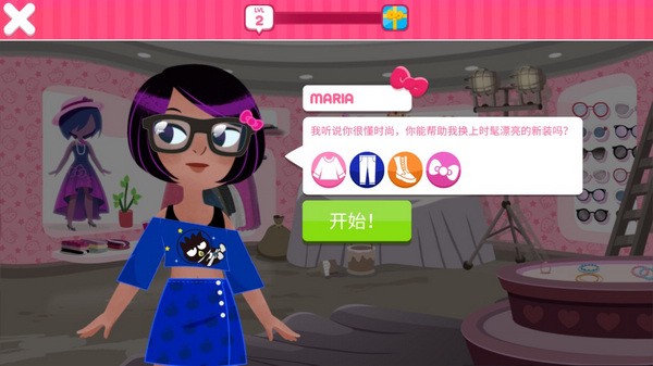 3、了解用户需求,点击“开始”就可以给顾客搭配时装啦!