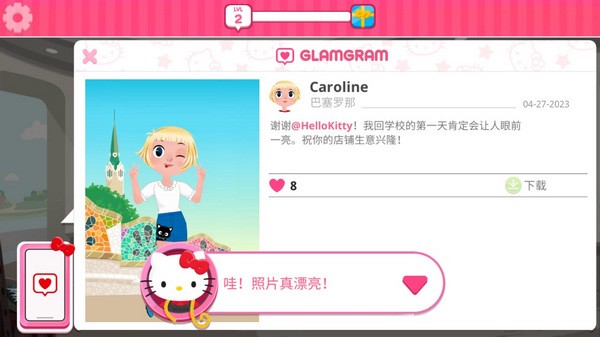 凯蒂猫时尚之星是一款以Hello Kitty为主题的换装游戏,玩家可以经营一家服装店,给顾客搭配各种风格的装扮。游戏设计简单有趣,充满了Hello Kitty元素,非常适合休闲娱乐,连小朋友都能轻松上手。游戏中有丰富的配饰和服装选择,玩家可以根据顾客的需求或自己的创意进行搭配,还能通过拍照分享到Glamgram赚取点赞和支持。