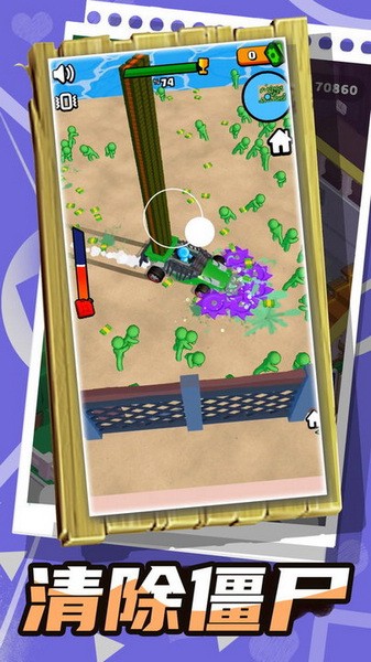 割草式战斗模式:游戏采用了割草式的战斗模式,玩家需要控制收割机在庞大的地图中快速消灭僵尸。这种简单直接的战斗方式,让玩家能够迅速沉浸在游戏的快感之中。