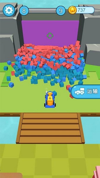2、当墙体轰炸完后,您可以将工具的模式切换为运输,将方块资源来运输至出售地点进行出售。