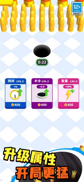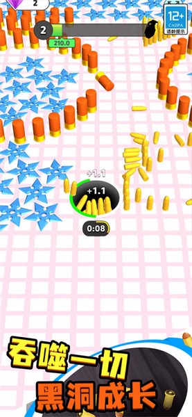 3、让黑洞拥有更加强大的吞噬能量就可以吞噬掉更多的物品,带给你更多释放压力的机会。