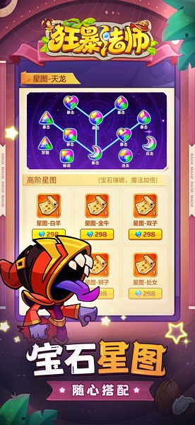 狂暴法师是一款非常好玩的休闲类手游,游戏内以魔法为题材,玩家们在游戏中的角色是一位新人法师,为了能够在危险海岛上生存下来,大家需要开启一段惊险有趣的魔法之旅,在这过程中大家需要通过抽卡来获得各种各样的装备和技能,并且利用自己的魔法来与敌人进行战斗,以此来提升自己的战斗力,狂暴法师游戏内还为大家准备了许多随机的地图,给游戏带来更多趣味。