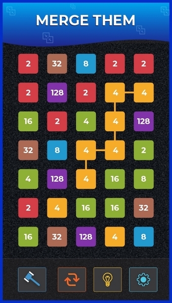 目标是连接相同编号的块,以便它们合并成更大的编号。