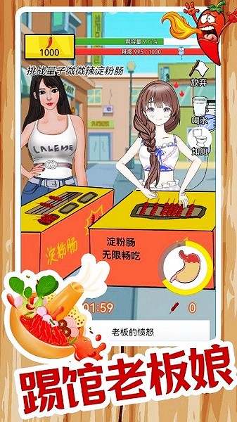 2、点击屏幕,角色就会开始吃辣椒,点的越快,吃的越快;