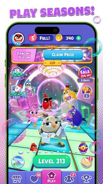 4、愤怒的小鸟梦幻爆破游戏的玩法内容与关卡道具设计不同于一般的消除游戏,很带感;