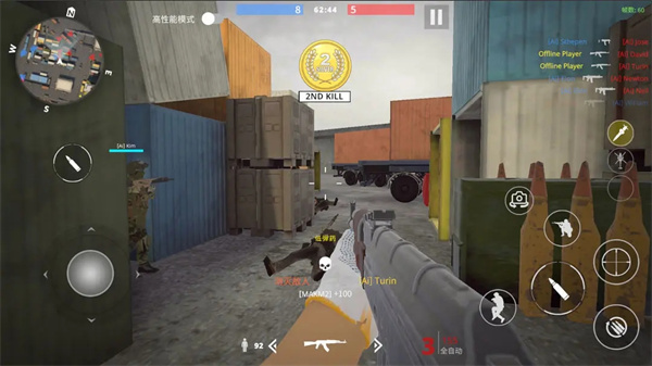 战斗时会掉空投物资,可以捡装备改变战局。击杀敌人还能召唤直升机或导弹,那种压制对手的感觉太爽了!音效特别真实,玩起来很有代入感。游戏地图也很多样化,有集装箱、训练场、车库等等场景,每次都能体验不同的战斗节奏。