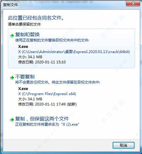 2、软件安装成功后,然后将crack文件夹下破解补丁复制到软件安装路径下,并覆盖替换原文件,选择复制和替换