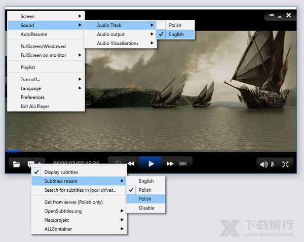 如果ALLPlayer检测到您没有要观看电影的字幕,将在最佳站点中找到有字幕的电影,并自动为您下载,非常方便。ALLPlayer专门设计用于字幕电影。