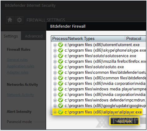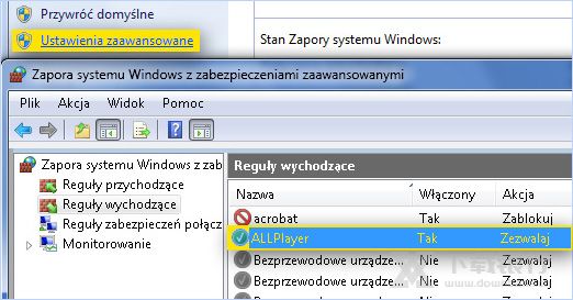 如果防火墙阻止了对Internet的访问,则必须更改防火墙高级选项中的规则。允许ALLPlayer程序或ALLPlayer.exe文件进行Internet连接。