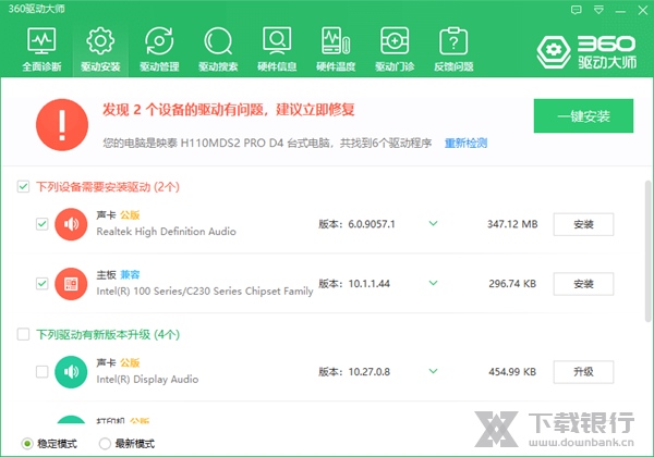 360驱动大师网卡版是一款安装电脑驱动的软件,软件可以检查你电脑上的驱动安装和更新,操作简单方便实用。该版本比普通版自带网卡驱动程序,不必下载,并且可以在无网的电脑上初次使用。软件可以用过硬件检查得到你电脑上硬件的基本信息,保证你所下载的驱动不含有病毒,一键安装和升级带提高用户体验。