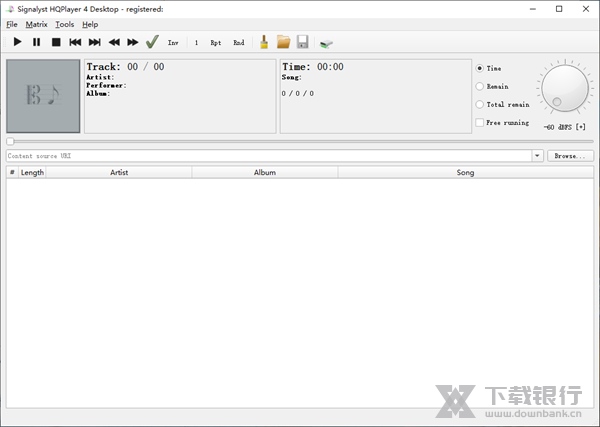 高质量的音频文件转换器,记录器和播放器。HQPlayer具有几个用户可选的高质量重采样器,以及用户可选的抖动/噪声整形算法和delta-sigma调制器。它主要用作制作各种格式的高质量最终发行文件的母带后期制作工具。任何受支持的源格式都可以转换为任何受支持的目标格式。例如,可以将Pyramix的DXD中间格式转换为PCM和DSD输出。