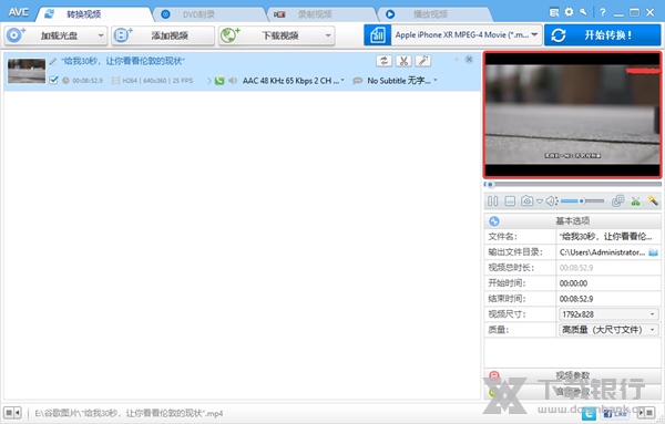 4、我们可以在右下方对基本选项、视频参数、音频参数等进行全面的设置。