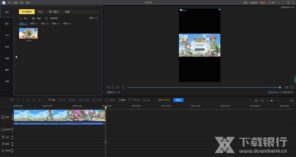 1、进入到软件之后,选择合适的视频宽高比,接着点击上方的“导入”选项导入想要添加字幕的视频文件,并将此文件拖动到下方的时间轴中,用户可以在播放窗口查看视频整体的播放效果,接着就可以开始往视频中添加需要的字幕了。