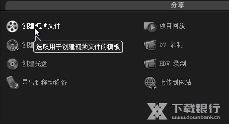 2、点击软件顶部的分享按钮,然后点击【创建视频文件】。您可以根据您的实际情况决定您要选择哪一种。