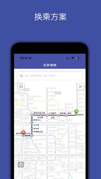 2、换乘方案:全国地铁设置起点和终点,查看换乘方案。