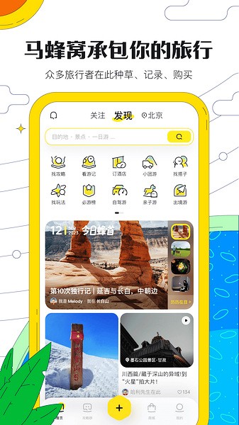 在旅途中,用户可以随时随地查询周边吃住玩乐攻略,通过实时的攻略信息做出更明智的决策。同时,通过浏览游记攻略,与蜂友互动,用户可以更好地了解目的地的实际情况。嗡嗡功能的引入更是为用户提供了一种全新的旅拍体验,强调在旅行过程中的内容分享,为用户的UGC内容创作带来更强的时效性和社区交流性。此外,应用还提供问答功能,让蜂友随时解答旅行问题,确保用户在旅途中能够放心出游。