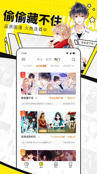 快看漫画发展至今累计用户近1亿人!这里有上千部高质量正版漫画作品每日更新,阅读量过亿作品300余部,粉丝数过百万作品150余部,当下流行的优质漫画都能在这里找到哦!