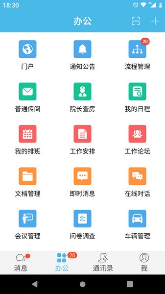 流程管理:可以处理审批我的待办、查看在办和已办的流程;支持查看自定义表单功能