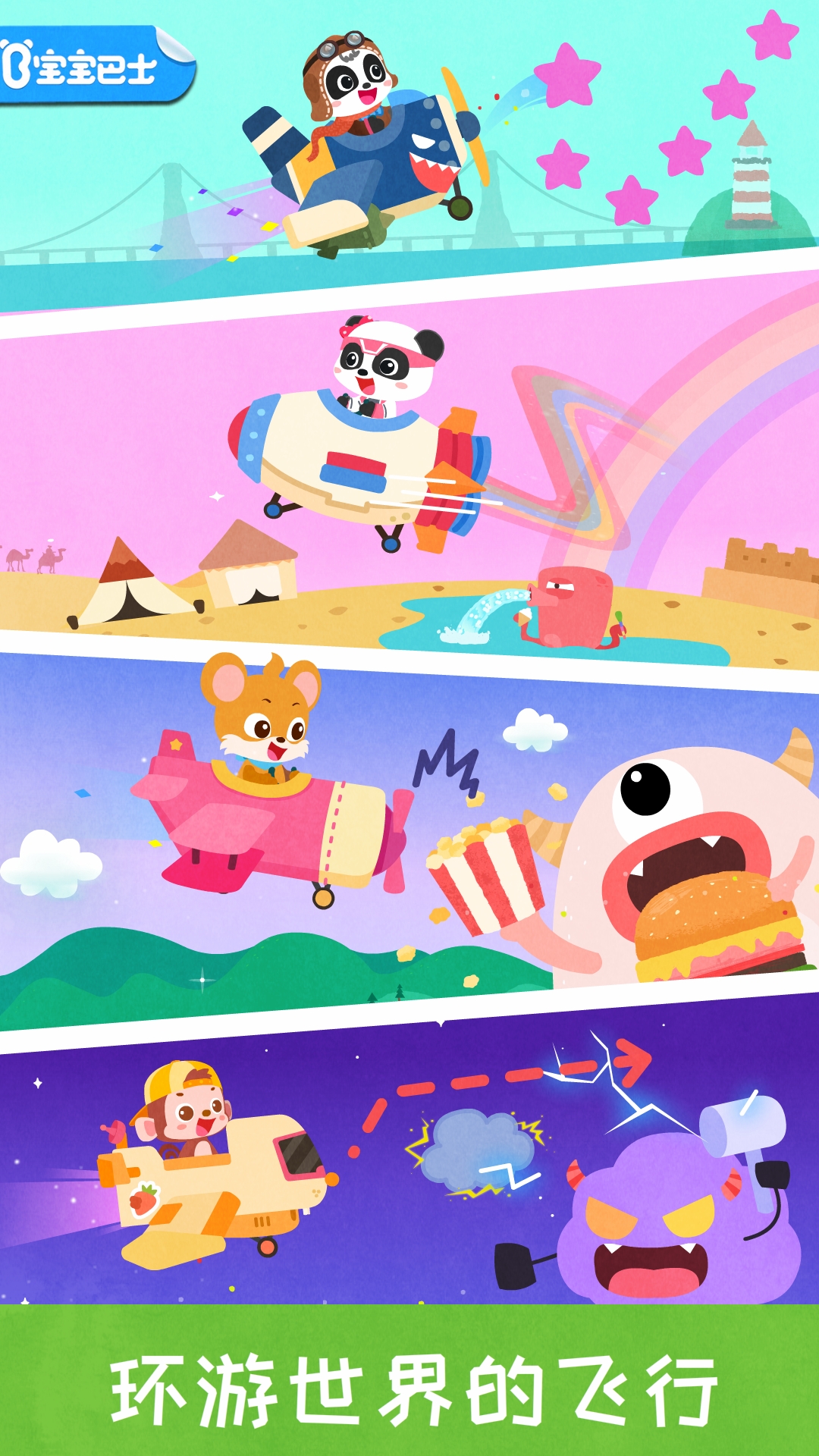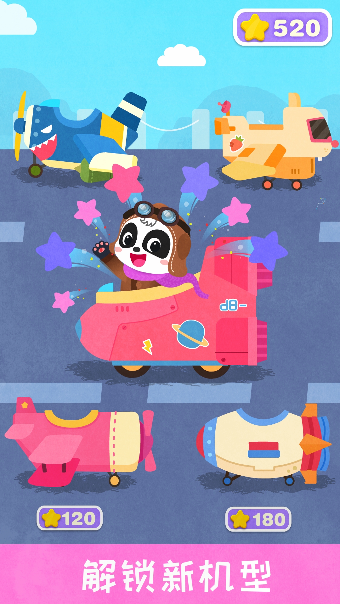 这款游戏叫“宝宝飞行员”,是给宝宝玩的早教游戏,挺有意思的。孩子能当小飞行员,开各种酷炫飞机环游世界,还能参加飞行比赛,修飞机什么的,玩法多样。游戏里有鲨鱼飞机、香蕉飞机这些特别的机型,还有冒险任务,比如躲闪电、高空接物啥的,既好玩又能锻炼反应力和专注力。