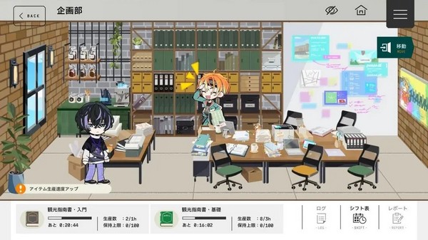 「经营」则可以编成轮班表,经过一定时间后入手观光指南书等育成道具。经营有分成各种部门,各部门的负责内容也不同。