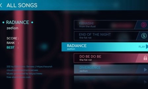 5、游戏中包含看大量的电子音乐,而且每一首音乐都拥有精挑细选的战斗背景和挑战元素。