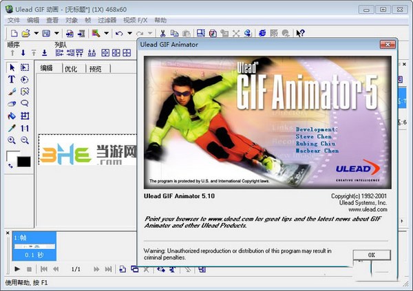2、虽然imageready也是处理gif的功能也远比该软件强大,但是某些操作上不如该软件来的简便和快捷,而且软件本身IR也比U5大的多,所以新手还是建议用Ulead GIF Animator 5。