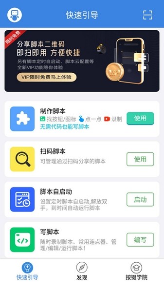 按键精灵是一款针对安卓设备所打造的脚本编辑软件,通过这款软件能够帮助用户快速的对脚本进行处理,支持在线录制、播放、编辑等操作,一键即可实现各种操作,有效的解放了玩家的双手,轻松实现游戏生活两不误。并且针对首次使用的玩家,可以免费进行录制,让每一位小伙伴都能够轻松创建属于自己的脚本,有需要的小伙伴快来下载吧。