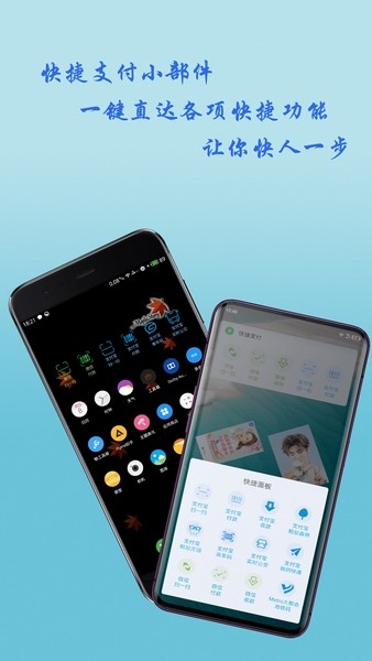 3、快捷支付小组件:一键直达支付宝付款、扫一扫、收款、蚂蚁森林、公交乘车码、收货快递码、支付宝名片、实时公交查询、快递查询,微信付款、扫一扫、收款、Metro大都会地铁乘车码,快人一步。